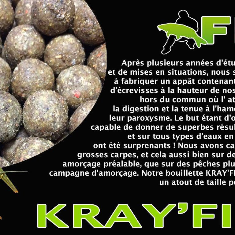 Après plusieurs années de tests intensifs sur le terrain, nous sommes fiers de vous présenter la bouillette KRAY’FISH, un appât hors du commun, riche en farine d’écrevisses, pensé pour performer toute l’année et sur tous types d’eaux.